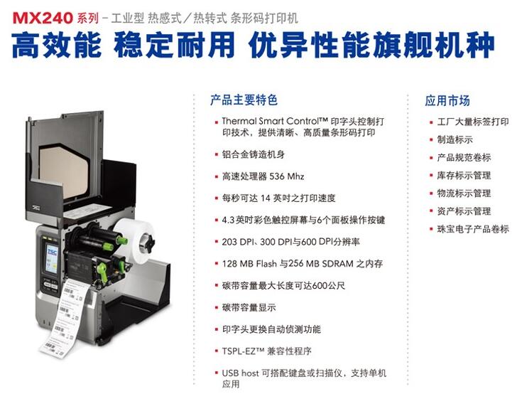 TSC有30多個(gè)系列,近百個(gè)機(jī)型的專業(yè)條形碼打印產(chǎn)品,種類涉及桌面型、工業(yè)型、便攜型、列印模組以及彩色打印,是目前所有品牌中產(chǎn)品較為齊全的制造廠商,可滿足各種行業(yè)的使用需求。