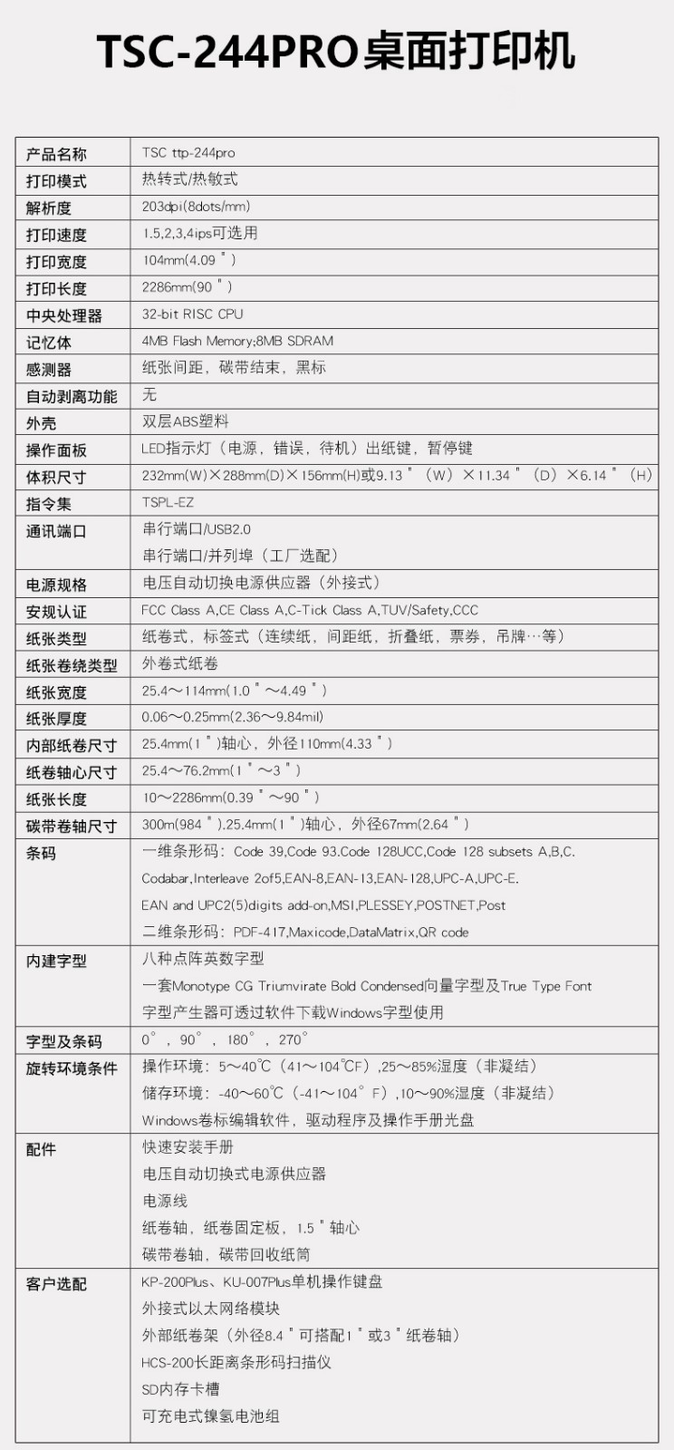 TSC有30多個系列,近百個機型的專業(yè)條形碼打印產(chǎn)品,種類涉及桌面型、工業(yè)型、便攜型、列印模組以及彩色打印,是目前所有品牌中產(chǎn)品較為齊全的制造廠商,可滿足各種行業(yè)的使用需求。